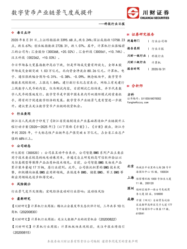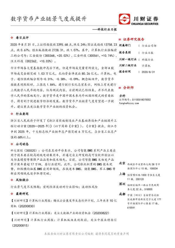 【川财证券】【20200831】科技行业日报:数字货币产业链景气度或提升-3页
