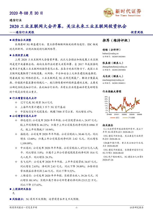工业互联网 投资机会 新基建 通信行业 5G