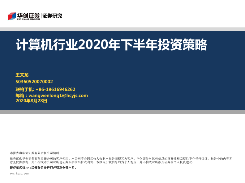 2020年下半年 华创证券 投资策略 计算机行业 证券研究