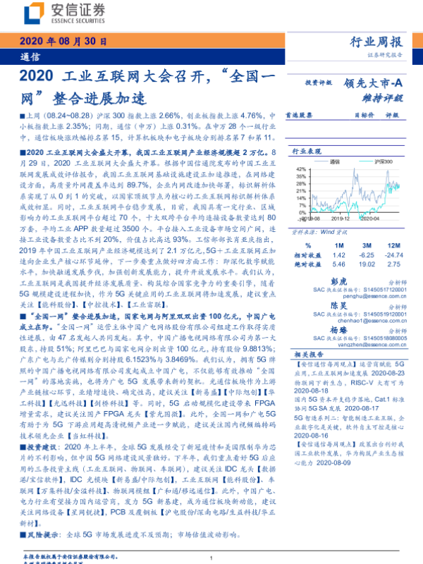 【安信证券】【20200830】2020工业互联网大会召开,“全国一网”整合进展加速-13页