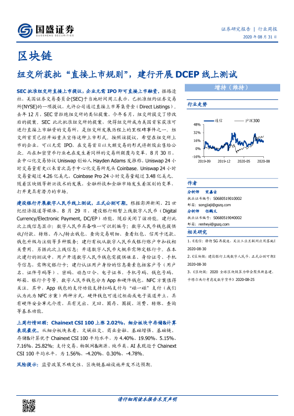 【国盛证券】【20200831】20200831-国盛证券-区块链行业周报:纽交所获批“直接上市规则”,建行开展DCEP线上测试-9页