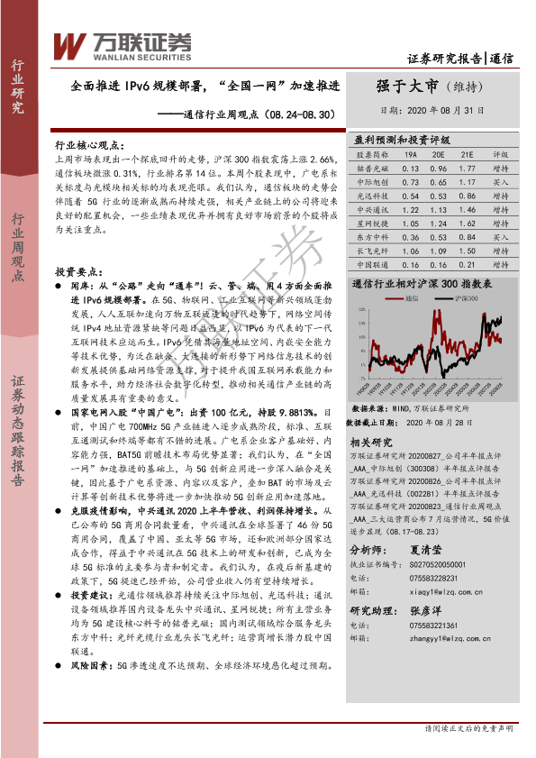 【万联证券】【20200831】20200831-万联证券-通信行业周观点:全面推进IPv6规模部署,“全国一网”加速推进-14页