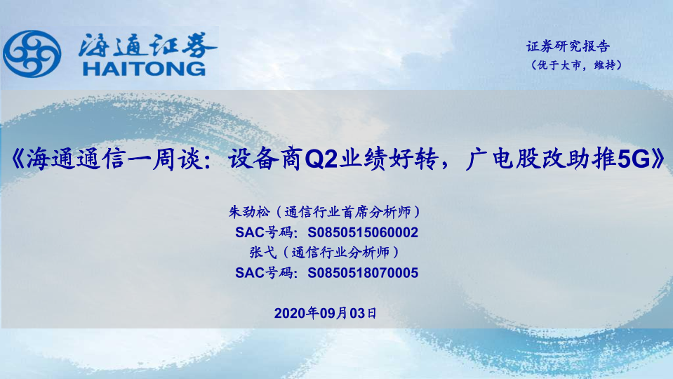 【海通证券】【20200903】海通通信一周谈:设备商Q2业绩好转,广电股改助推5G-12页