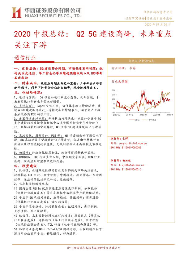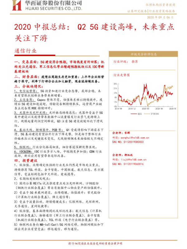 【华西证券】【20200906】2020中报总结:Q2 5G建设高峰,未来重点关注下游-21页