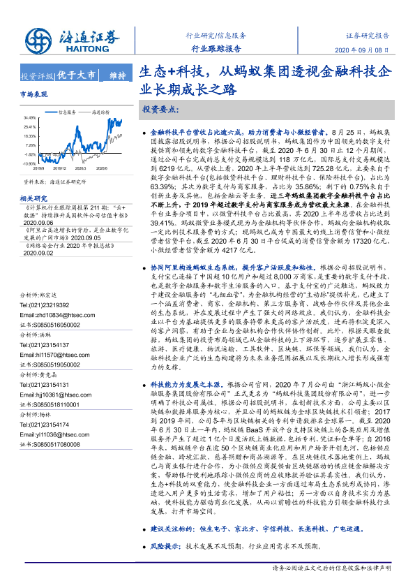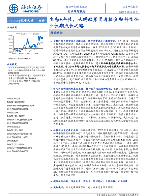 【海通证券】【20200908】信息服务:生态+科技,从蚂蚁集团透视金融科技企业长期成长之路-2页