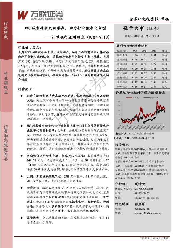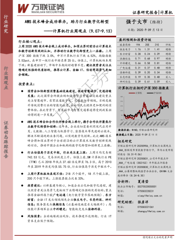 【万联证券】【20200913】20200913-万联证券-计算机行业周观点:AWS技术峰会成功举办,助力行业数字化转型-12页