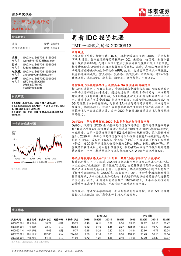 【华泰证券】【20200913】TMT一周谈之通信:再看IDC投资机遇-18页