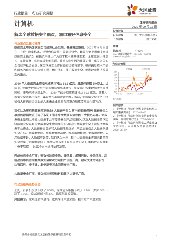 【天风证券】【20200913】20200913-天风证券-计算机行业研究周报:解读全球数据安全倡议,重申看好信息安全-7页