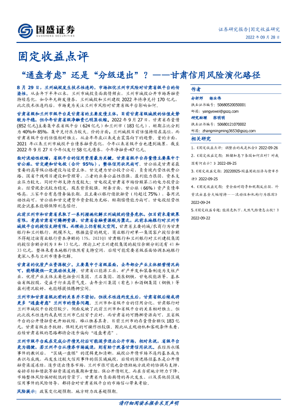 【国盛证券】【20220928】固定收益点评:甘肃信用风险演化路径,“通盘考虑”还是“分级退出”?-18页