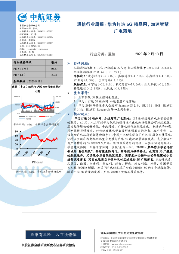 【中航证券】【20200913】20200913-中航证券-通信行业周报:华为打造5G精品网,加速智慧广电落地-4页