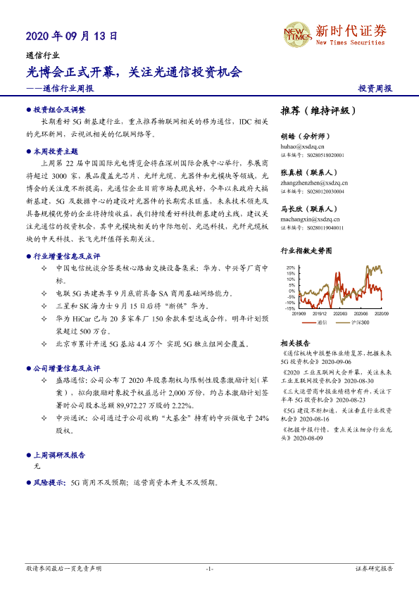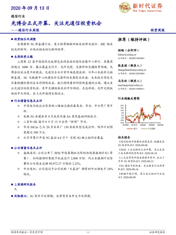 【新时代证券】【20200913】通信行业周报:光博会正式开幕,关注光通信投资机会-17页