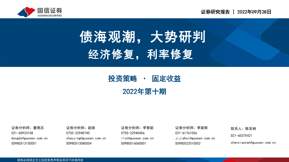 【国信证券】【20220928】固定收益投资策略2022年第十期:债海观潮,大势研判,经济修复,利率修复-56页