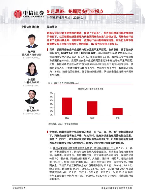 【中信证券】【20200914】20200914-中信证券-计算机行业周观点:9月思路:把握网安行业拐点-12页