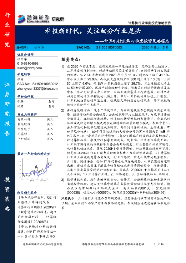 【渤海证券】【20200915】计算机行业第四季度投资策略报告:科技新时代,关注细分行业龙头-46页
