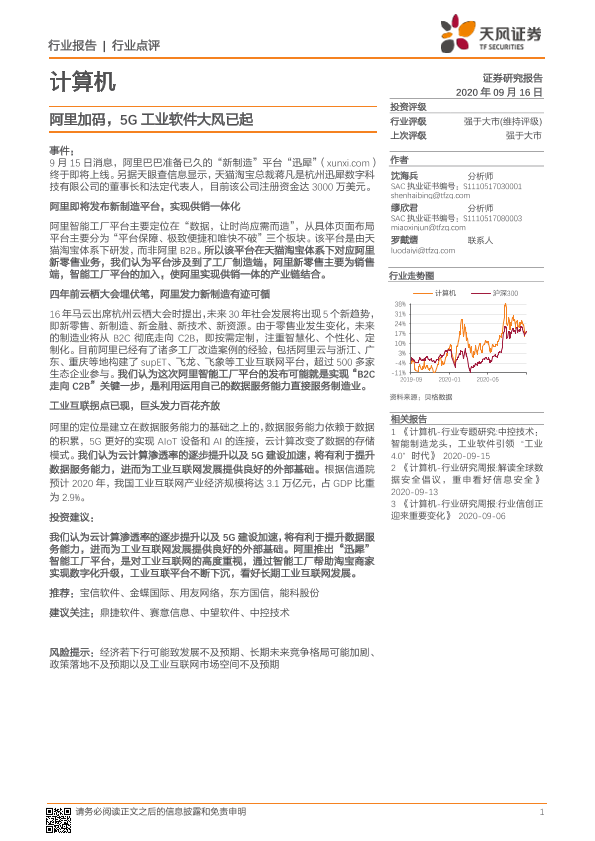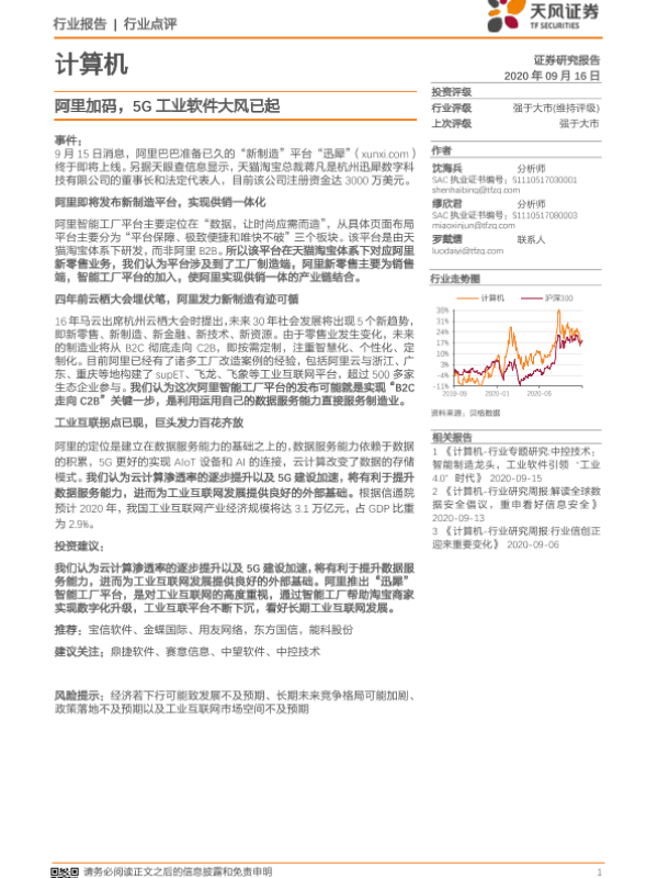 【天风证券】【20200916】计算机行业点评:阿里加码,5G业软件大风已起-6页