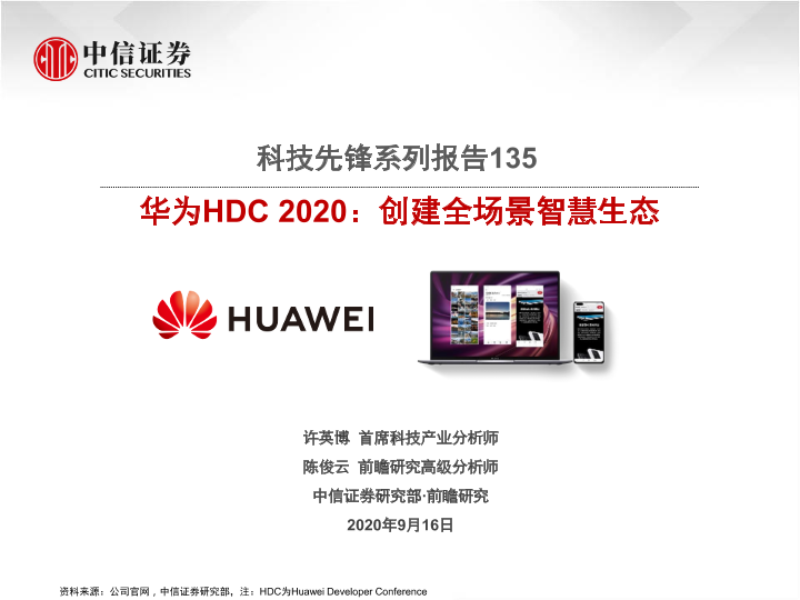 【中信证券】【20200916】科技先锋系列报告135:华为HDC2020:创建全场景智慧生态-42页