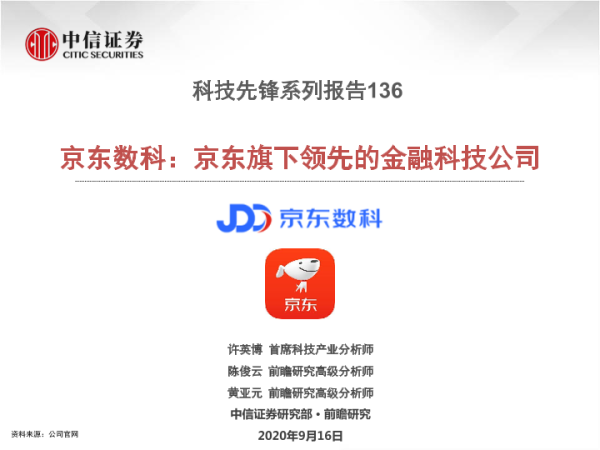 【中信证券】【20200916】京东数科:京东旗下领先的金融科技公司-30页