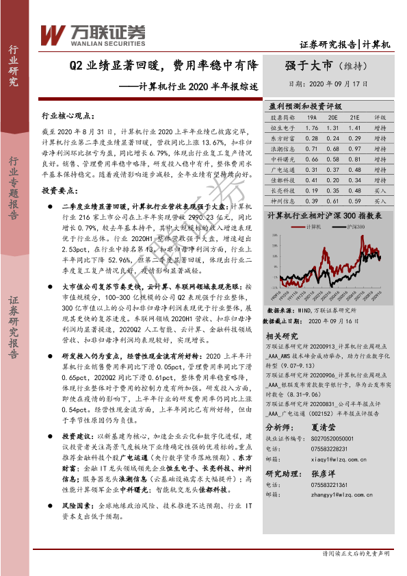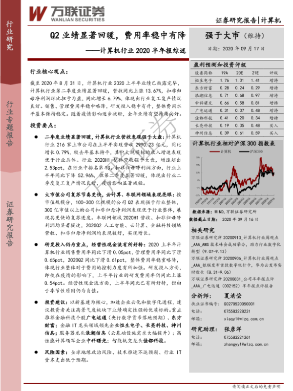 【万联证券】【20200917】计算机行业2020半年报综述:Q2业绩显著回暖,费用率稳中有降-21页