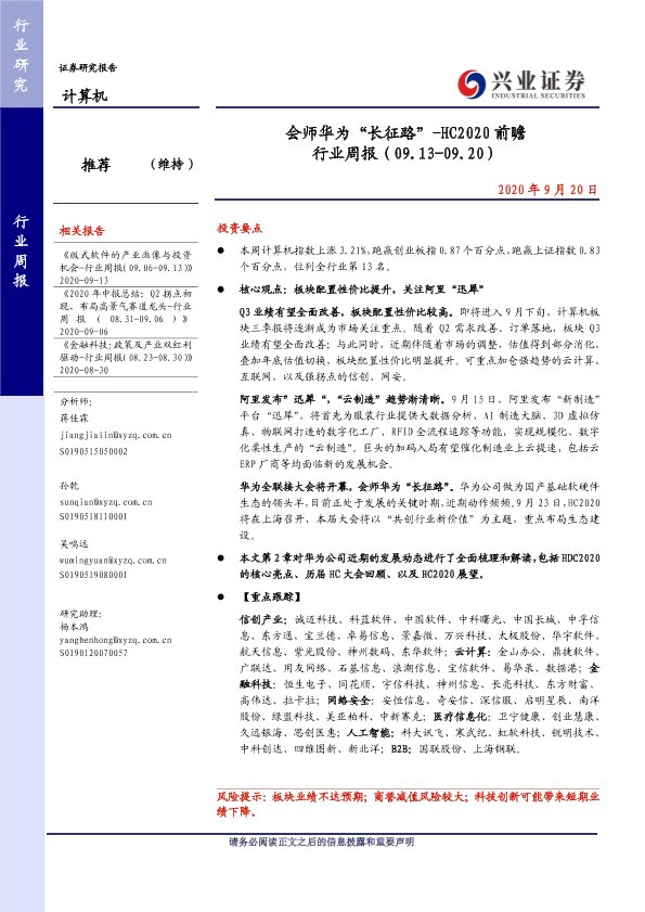 【兴业证券】【20200920】会师华为“长征路”-HC2020前瞻 行业周报(09.13-09.20)-30页