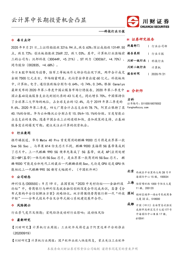 【川财证券】【20200921】科技行业日报:云计算中长期投资机会凸显-3页