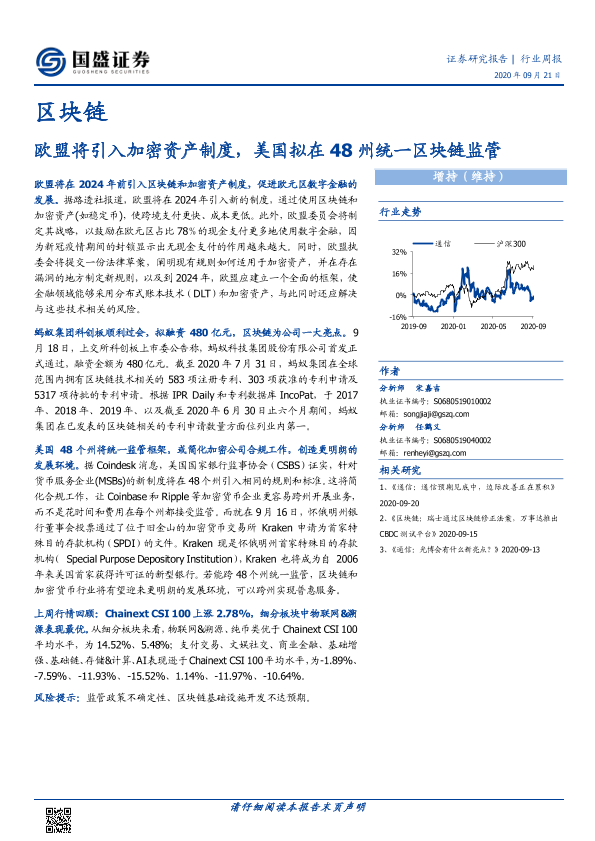 【国盛证券】【20200921】区块链行业周报:欧盟将引入加密资产制度,美国拟在48州统一区块链监管-9页