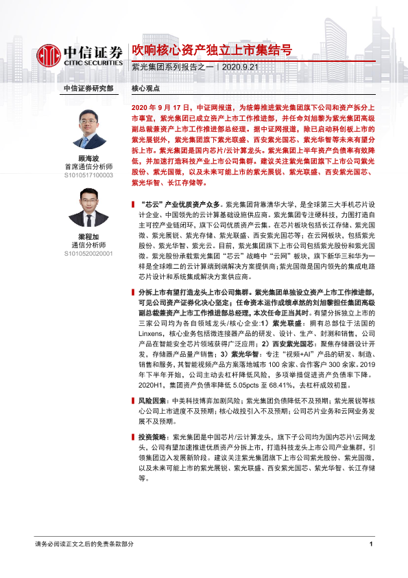 【中信证券】【20200921】通信:紫光集团系列报告之一-吹响核心资产独立上市集结号-2页