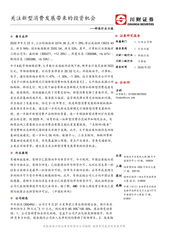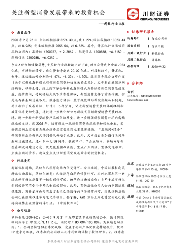 【川财证券】【20200922】科技行业日报:关注新型消费发展带来的投资机会-3页