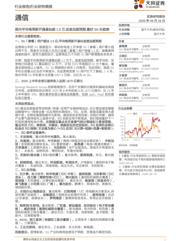 【天风证券】【20200926】通信行业研究周报:国内平均每周新开通基站超1.5万,进度远超预期,看好5G长趋势-15页