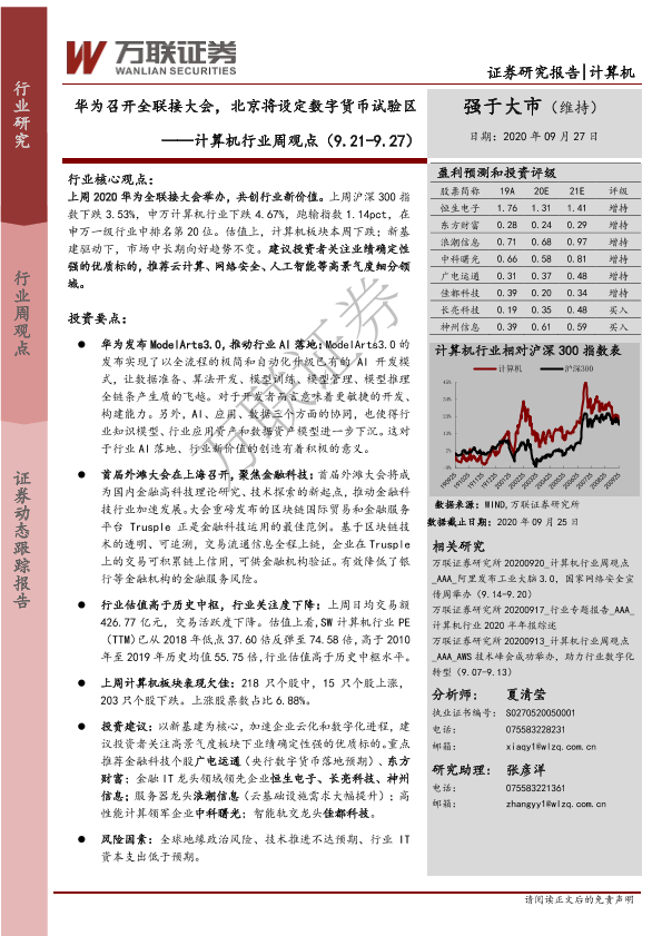 【万联证券】【20200927】20200927-万联证券-计算机行业周观点:华为召开全联接大会,北京将设定数字货币试验区-12页