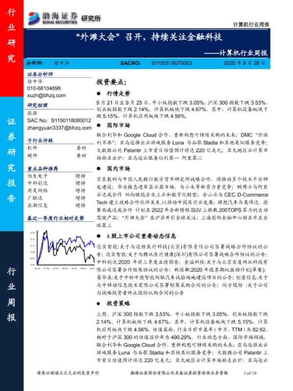 【渤海证券】【20200928】20200928-渤海证券-计算机行业周报:“外滩大会”召开,持续关注金融科技-19页