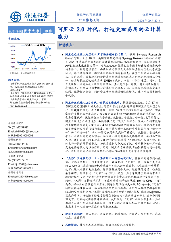 【海通证券】【20200929】信息服务行业信息点评:阿里云2.0时代,打造更加易用的云计算能力-2页