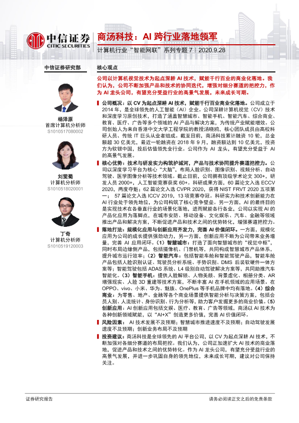 【中信证券】【20200928】商汤科技:AI跨行业落地领军-25页
