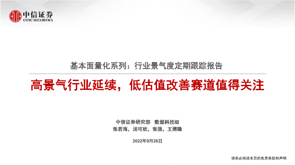 2022年 中信证券 投资建议 行业景气度 量化分析