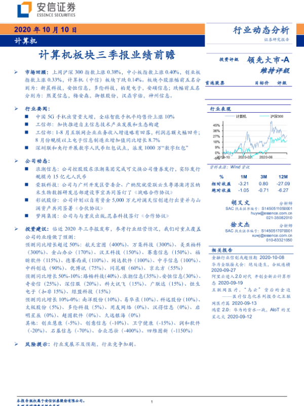 三季报 业绩前瞻 股市分析 行业动态 计算机板块