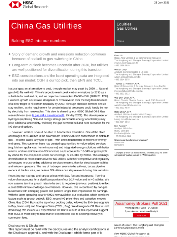 【The Hongkong and Shanghai Banking Corporation Limited】【20210723】HSBC-中国天然气公用事业-在我们的数字中加入ESG-43页