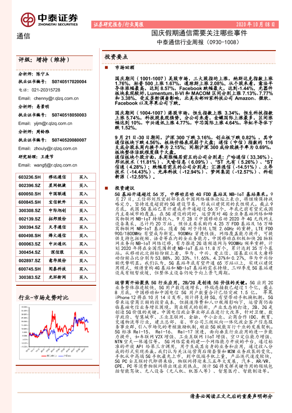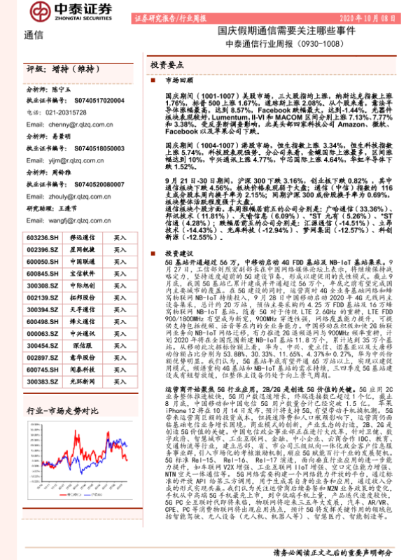 【中泰证券】【20201008】中泰通信行业周报:国庆假期通信需要关注哪些事件-16页
