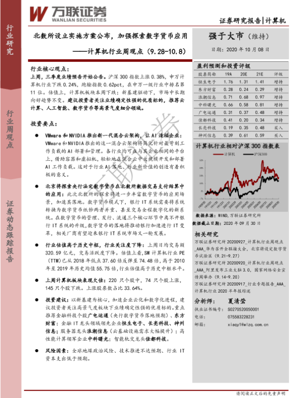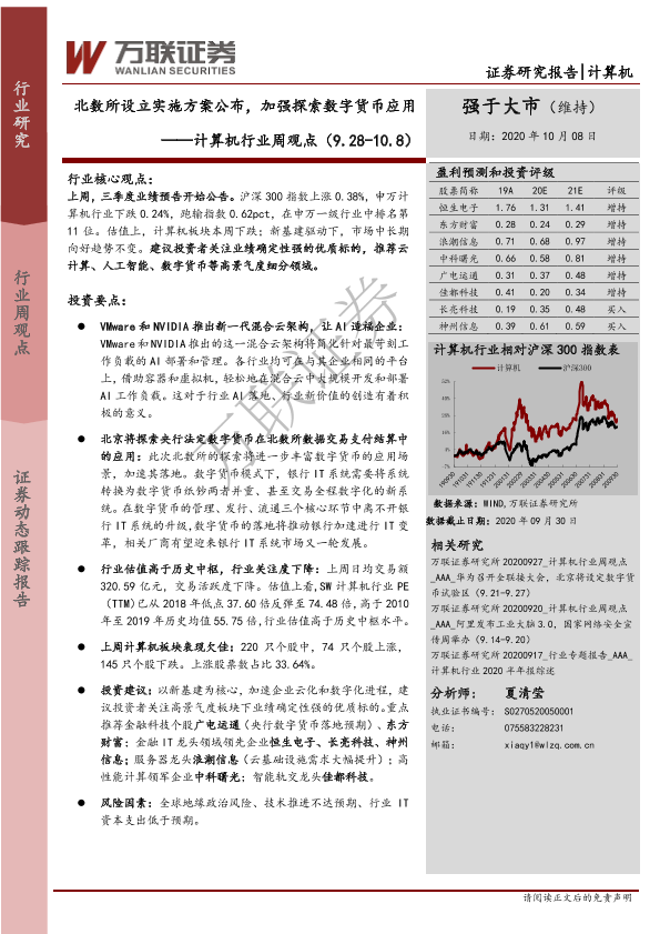 【万联证券】【20201008】20201008-万联证券-计算机行业周观点:北数所设立实施方案公布,加强探索数字货币应用-11页