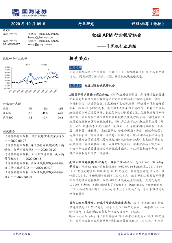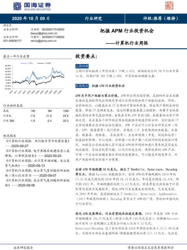 【国海证券】【20201009】计算机行业周报:把握APM行业投资机会-13页
