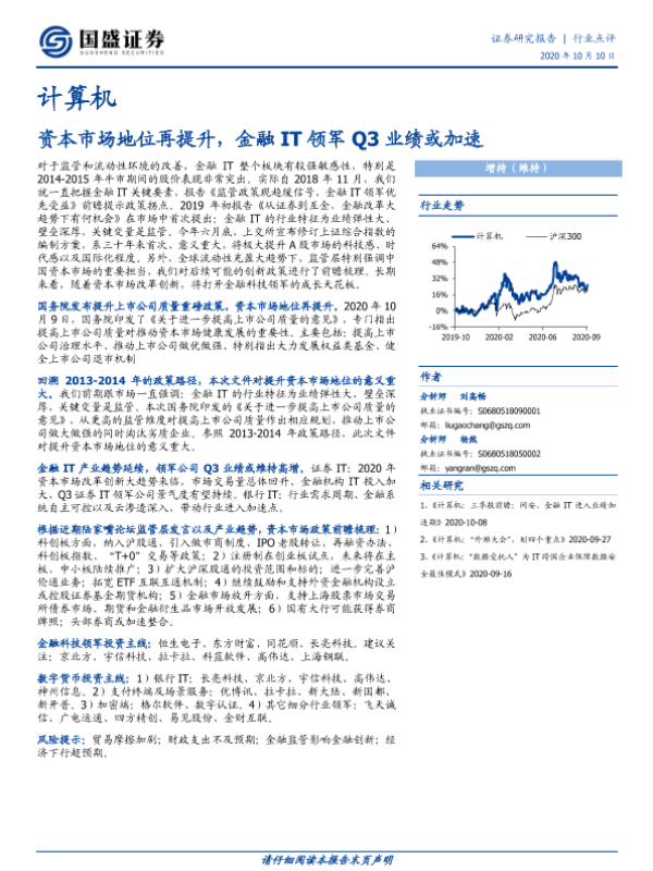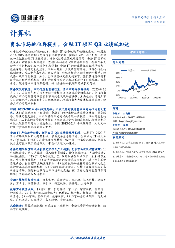 【国盛证券】【20201010】计算机:资本市场地位再提升,金融IT领军Q3业绩或加速-10页