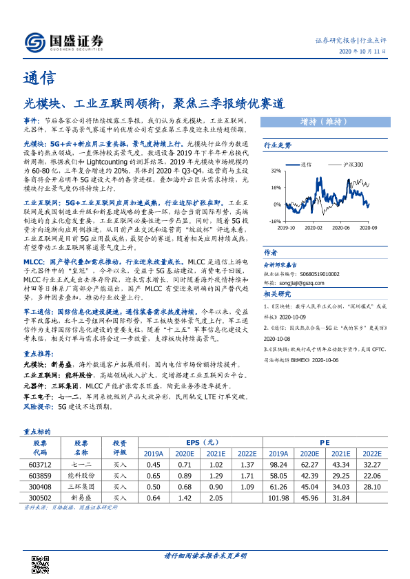 【国盛证券】【20201011】通信行业点评:光模块、工业互联网领衔,聚焦三季报绩优赛道-2页