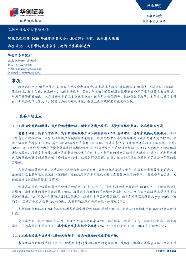 【华创证券】【202010】互联网行业重大事项点评:阿里巴巴召开2020年投资者日大会-7页