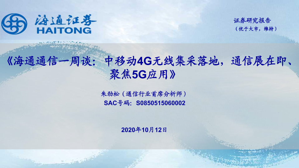【海通证券】【20201012】海通通信一周谈:中移动4G无线集采落地,通信展在即、聚焦5G应用-11页