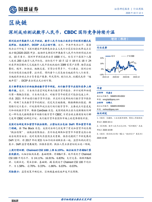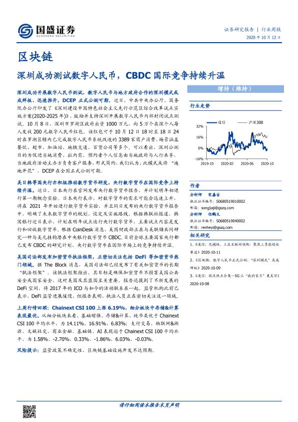 【国盛证券】【20201012】20201012-国盛证券-区块链行业周报:深圳成功测试数字人民币,CBDC国际竞争持续升温-8页