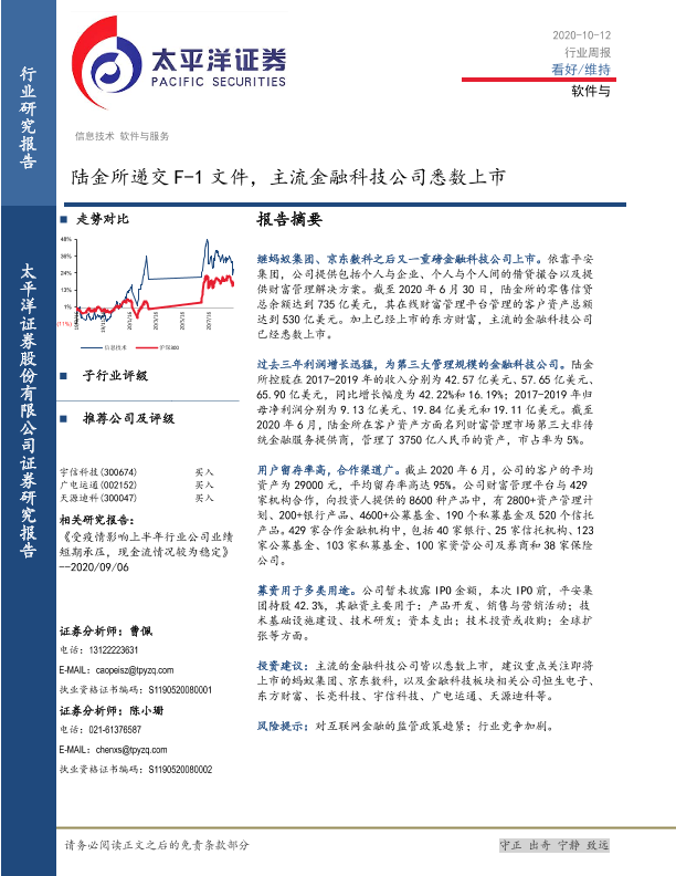 【太平洋证券】【20201012】20201012-太平洋-软件与服务行业周报:陆金所递交F-1文件,主流金融科技公司悉数上市-3页