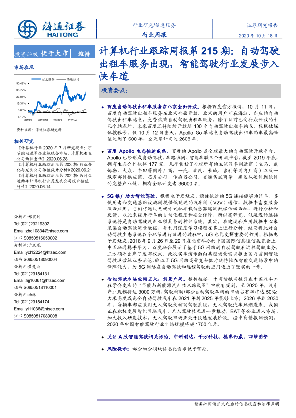 【海通证券】【20201018】计算机行业跟踪周报第215期:自动驾驶出租车服务出现,智能驾驶行业发展步入快车道-4页