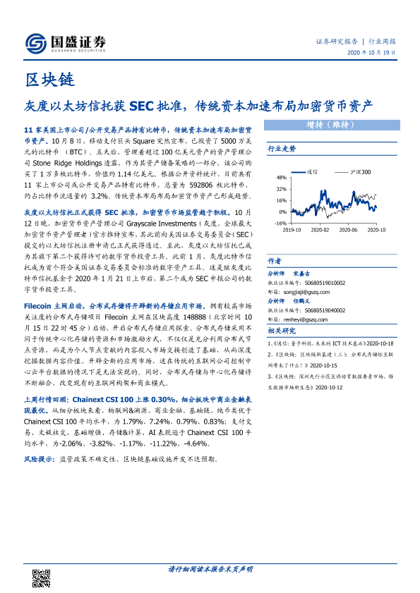 【国盛证券】【20201019】区块链行业周报:灰度以太坊信托获SEC批准,传统资本加速布局加密货币资产-9页
