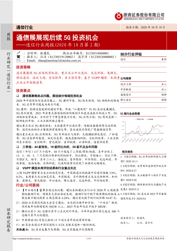 【浙商证券】【20201019】通信行业周报(2020年10月第2期):通信展展现后续5G投资机会-19页