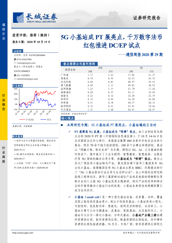 【长城证券】【20201019】通信周报2020第29期:5G小基站成PT展亮点,千万数字法币红包推进DC/EP试点-25页