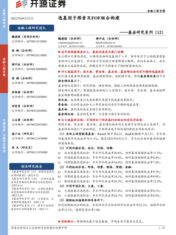 【开源证券】【20220925】基金研究系列(12):选基因子探索及FOF组合构建-21页