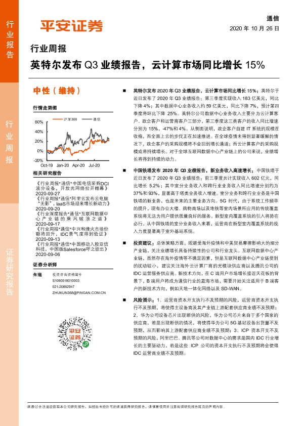 【平安证券】【20201026】通信行业周报:英特尔发布Q3业绩报告,云计算市场同比增长15%-5页